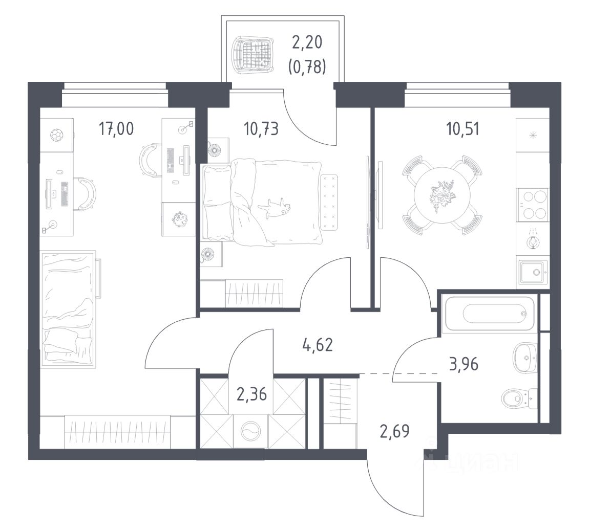 Строим кварталы для жизни с заботой о будущем. Предлагается 2-комнатная квартира комфорт-класса площадью 52,65 кв.м в корпусе 10.2 на 12-м этаже, в жилом комплексе "Богдановский Лес".