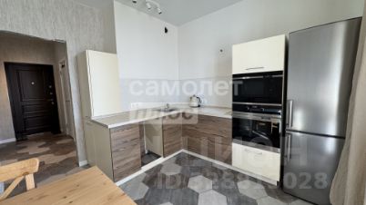 Кухня: готовый кухонный гарнитур, встроенные плита, духовой шкаф, микроволновая печь. Предусмотрено место под посудомоечную машинку.