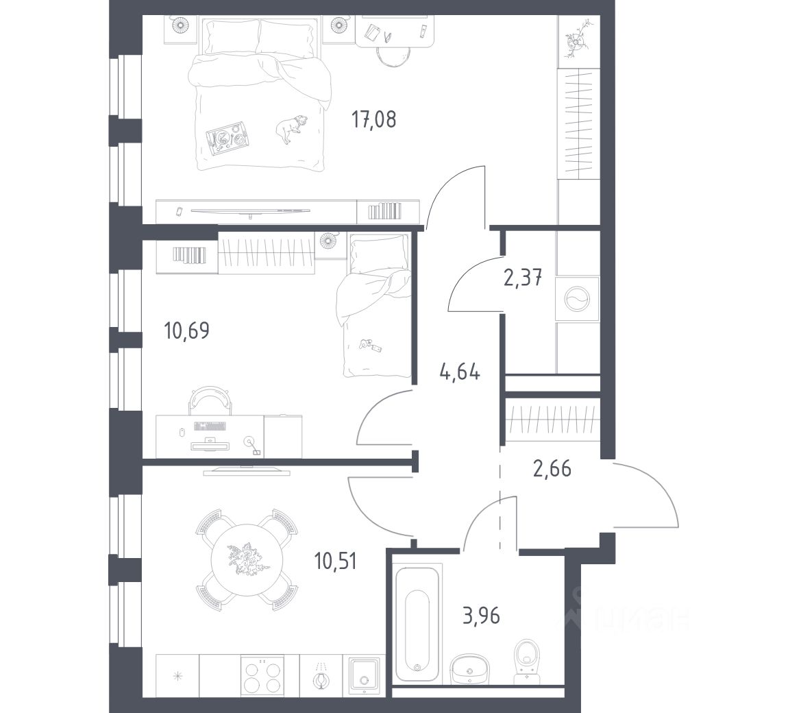 А если не хочется тратить время на ремонт, можно выбрать опцию — с отделкой. Перед тем как отдать ключи, застройщик установит натяжные потолки, поклеит обои под покраску, положит ламинат светлых тонов, а в санузлах — керамическую плитку и керамогранит.