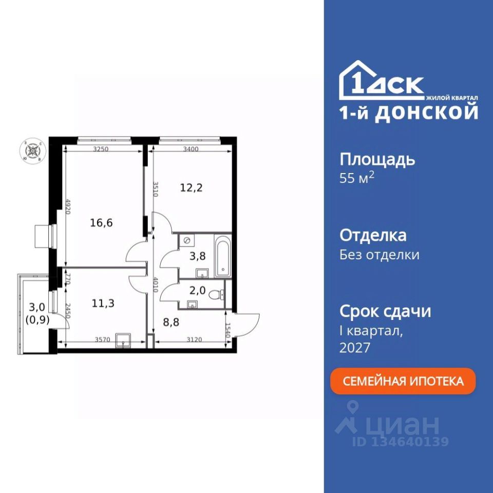 Продаётся 2-к квартира номер 146 общей площадью 55.6 кв.м. на 15-м этаже 24 этажного здания.