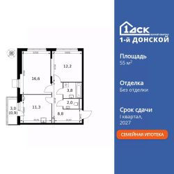 Продаётся 2-к квартира номер 146 общей площадью 55.6 кв.м. на 15-м этаже 24 этажного здания. Без отделки. Цена с учётом скидки.