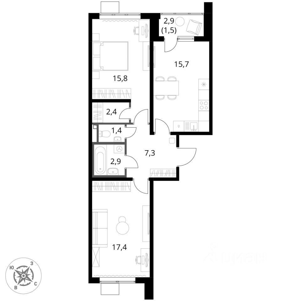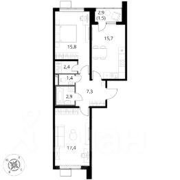 Продаётся 2-к квартира номер 573 общей площадью 64.4 кв.м. на 11-м этаже 24 этажного здания.
