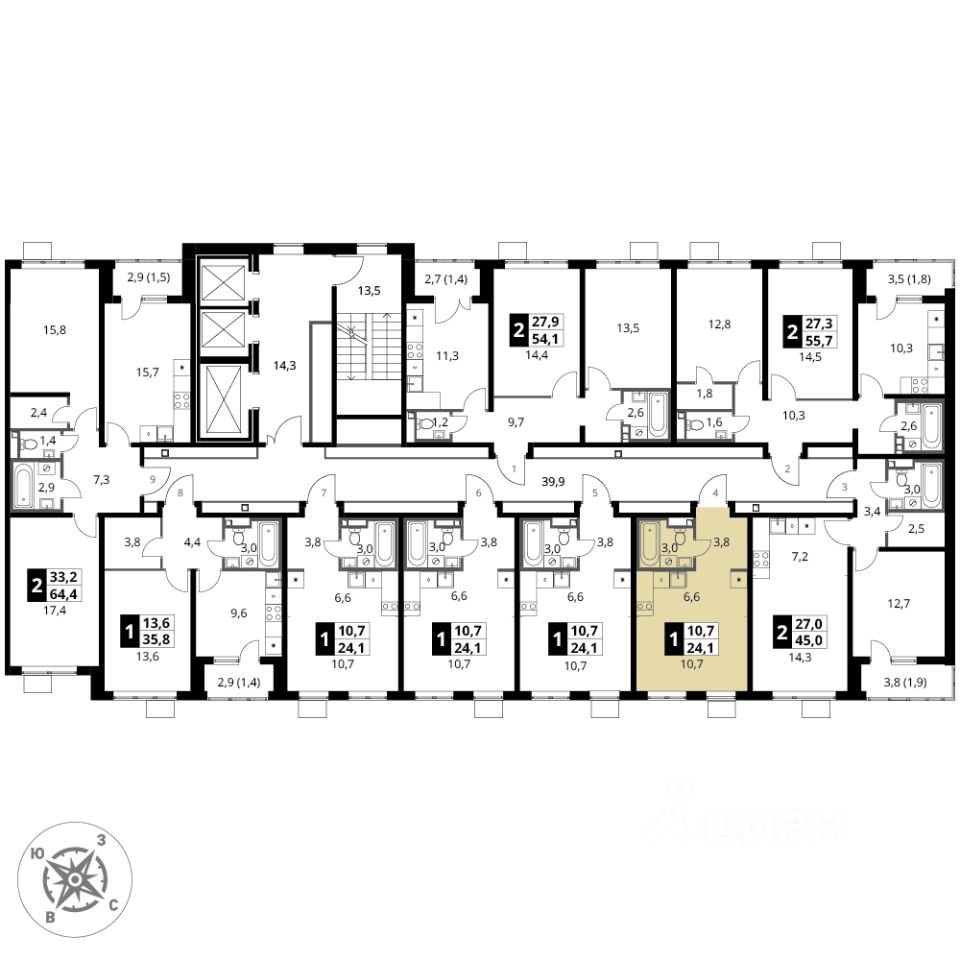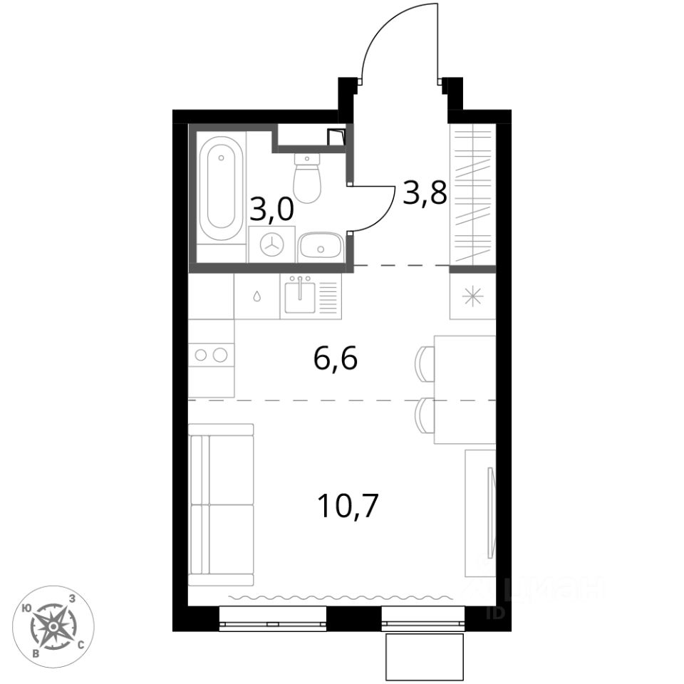 Продаётся квартира-студия номер 577 общей площадью 24.1 кв.м. на 12-м этаже 24 этажного здания.