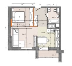зона и просторная кухня. При желании можно установить раздвижные перегородки -
