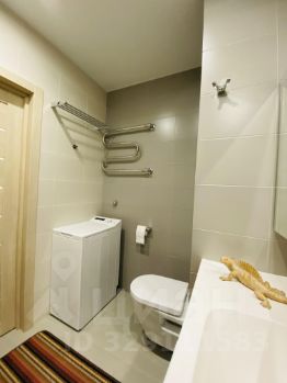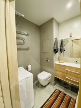 Ванная комната: большая ванна, подвесная тумба с раковиной, стиральная