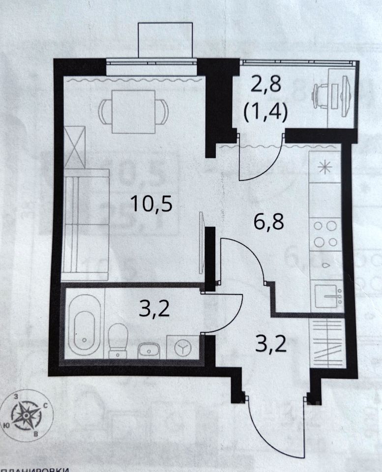 Квартира общей площадью 25,1 кв.м. на 7-м этаже 25 этажного дома.