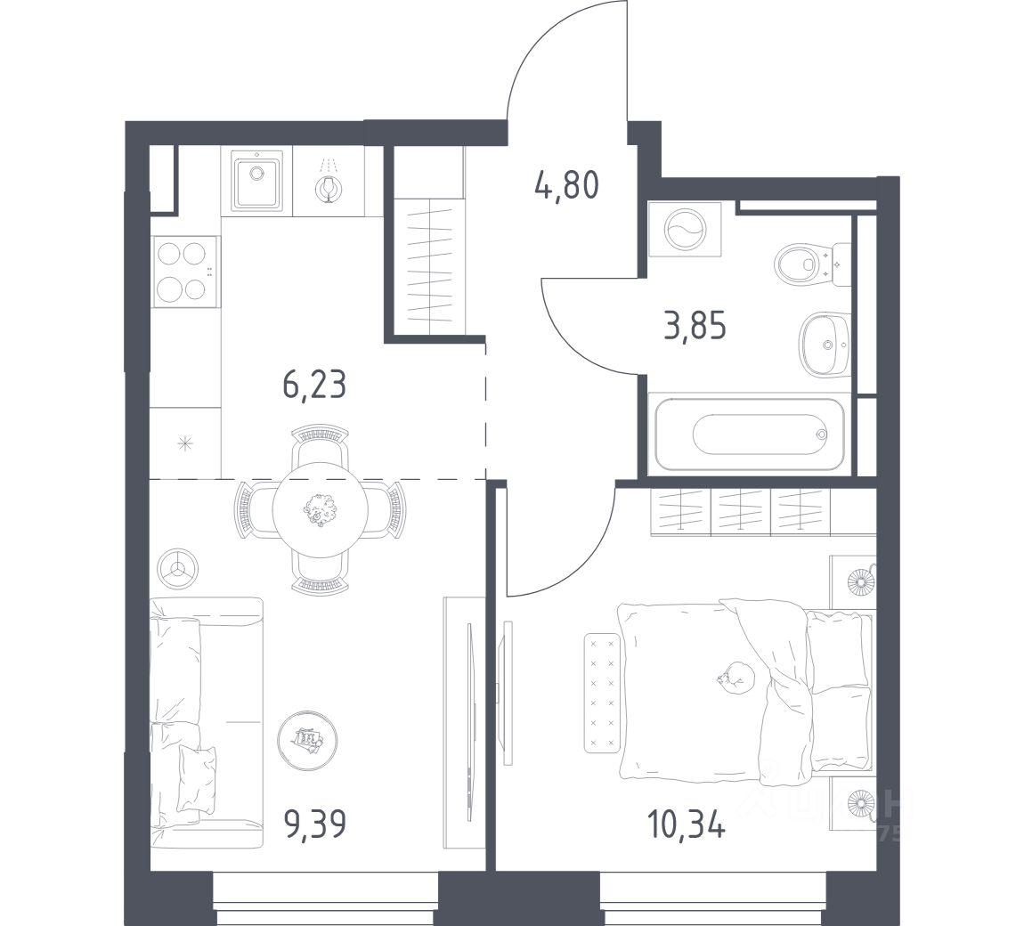 Строим кварталы для жизни с заботой о будущем. Предлагается 1-комнатная квартира комфорт-класса площадью 34,61 кв.м в корпусе 10.2 на 7-м этаже, в жилом комплексе "Богдановский Лес".