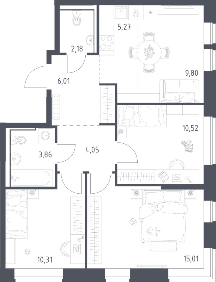 Продаётся 3-комнатная квартира в строящемся доме (Корпус 21), срок сдачи: IV-кв. 2027, общей площадью 67.01 кв.м., на 2 этаже. "Пригород. Лесное" возводится в экологически чистом районе в 4 км от МКАД на берегу реки Людовна вблизи города Видное.