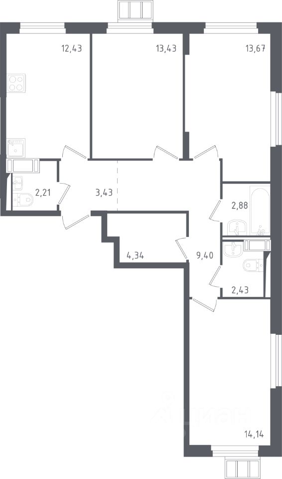 Продаётся 3-комнатная квартира в сданном доме (Корпус 3.1), срок сдачи: IV-кв. 2024, общей площадью 77.4 кв.м., на 17 этаже. Расположение, транспортная доступность