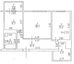 В квартире - практичная вместительная гардеробная (5,9 кв. м), которую возможно переоборудовать в отдельную комнату или кабинет.