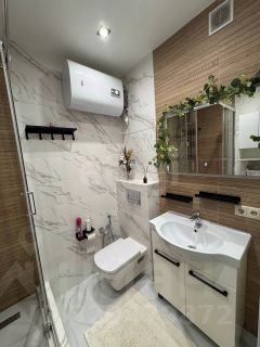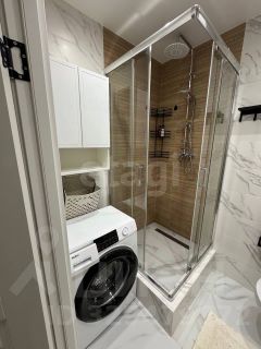 В квартире выполнен дизайнерский ремонт со встроенной мебелью и техникой, совмещённый санузел отделан качественными материалами.