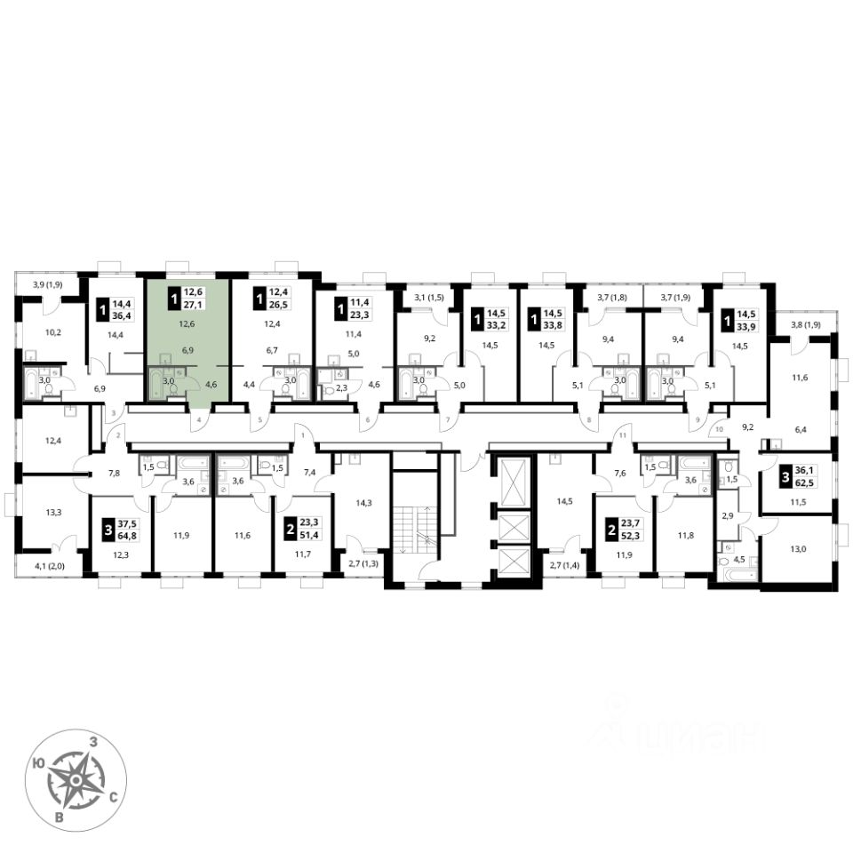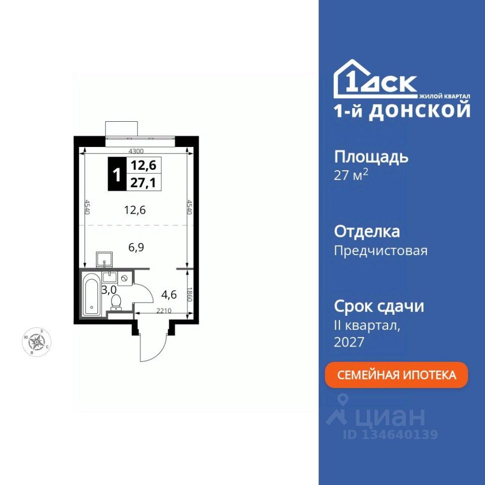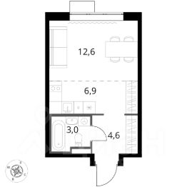 Продаётся квартира-студия номер 70 общей площадью 27.1 кв.м. на 8-м этаже 24 этажного здания.