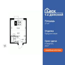 Продаётся квартира-студия номер 70 общей площадью 27.1 кв.м. на 8-м этаже 24 этажного здания. Предчистовая отделка. Цена с учётом скидки.