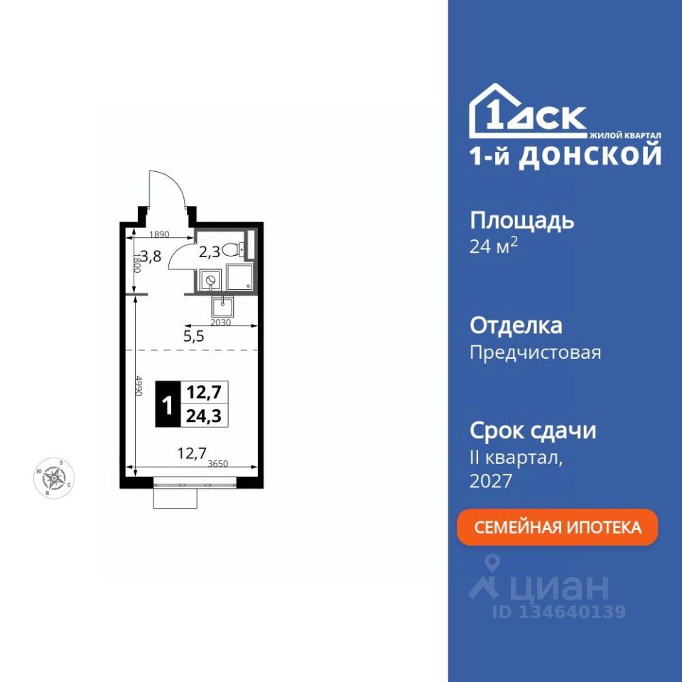 Продаётся квартира-студия номер 620 общей площадью 24.3 кв.м. на 14-м этаже 24 этажного здания.