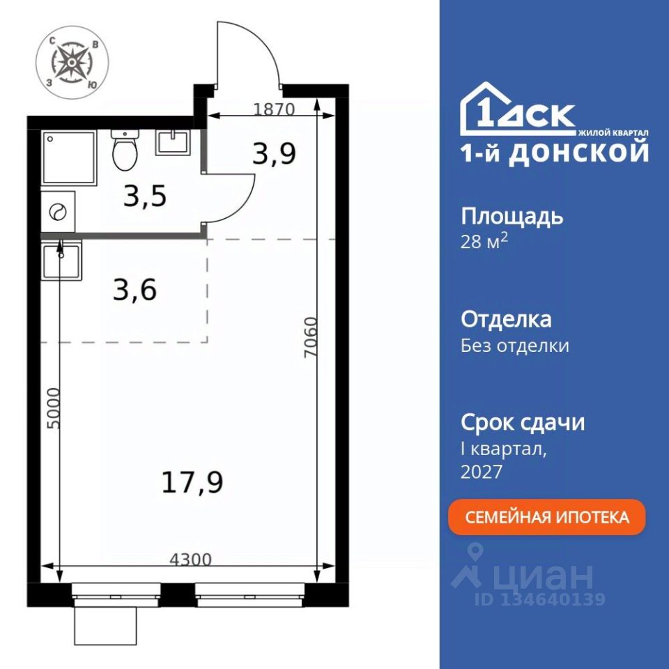 Продаётся квартира-студия номер 338 общей площадью 28.9 кв.м. на 9-м этаже 24 этажного здания. Без отделки. Цена с учётом скидки.