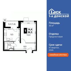 Продаётся 1-к квартира номер 453 общей площадью 36.5 кв.м. на 22-м этаже 24 этажного здания. Предчистовая отделка. Цена с учётом скидки.
