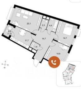 Общая площадь квартиры составляет 87 метром. Располагается на комфортном для жизни 2-м этаже 7-ми этажного корпуса ЖК.