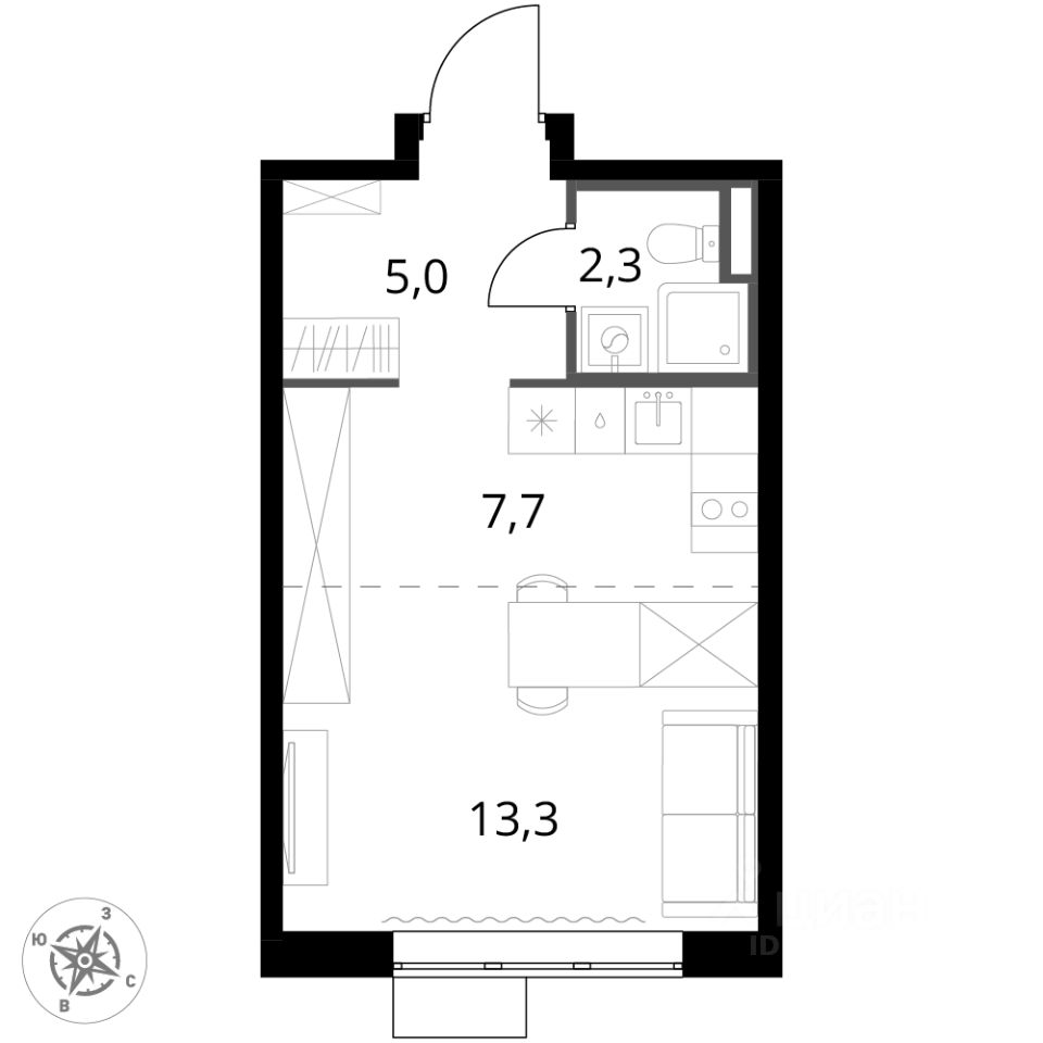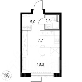 Продаётся квартира-студия номер 498 общей площадью 28.3 кв.м. на 3-м этаже 24 этажного здания.