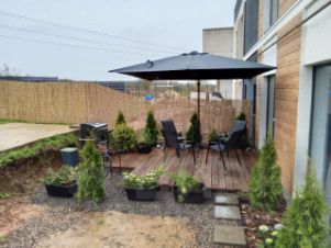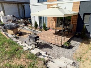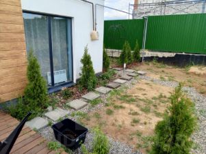 На участке смонтированы ворота откатные 2 шт, калитки 2шт , видео наблюдение по периметру . Сделано благоустройство , посажены Туи , розы, кустарники, газон.