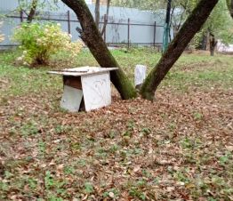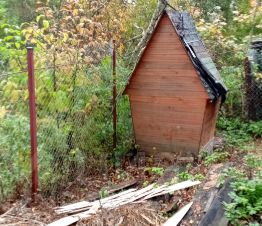 На участке новая бытовка для хранения инвентаря.