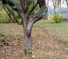 На территории посажены плодовые деревья.