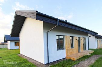На первом этаже расположена просторная кухня-гостиная 30.2 кв.м с выходом на террасу - 24 кв.м, 3 спальни, санузел, гардеробная. В доме выполнена предчистовая WhiteBox отделка стен, теплый пол по всей площади. В доме сделаны закладные под кондиционер и установлены клапана приточной вентиляции в комнатах.