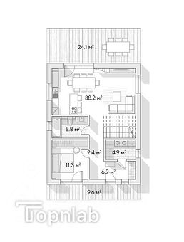 На первом этаже расположена просторная кухня-гостиная с выходом на террасу, гостевая спальня, санузел, гардеробная, постирочная / котельная. На втором этаже дома расположена мастер-спальня с гардеробной, 2 спальни и санузел. В доме выполнена предчистовая отделка стен, теплый пол по всей площади. В доме сделаны закладные под кондиционер и установлены клапана приточной вентиляции в комнатах.