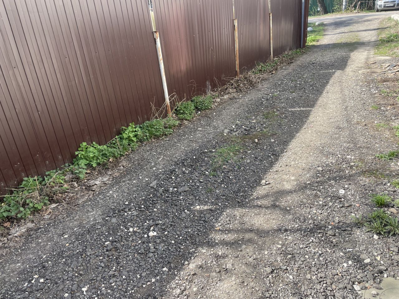 Перед зем. участком сделана парковка для машин, отсыпана щебнем.