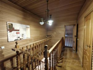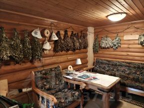 Жилой дом бревенчатый (сруб) площадью 152,1 кв. метра в два этажа, с пристройкой, террасой, баней, бильярдной с камином, мансардным этажом и навесом. На первом этаже веранда 15,2 кв. метра, огромная гостиная 30,4 кв. метра с камином, кухонной зоной 5,8 кв. метра, есть санузел с душевой кабиной, парная, душевая с купелью, комната отдыха 13,8 кв. метра, терраса 6,2 кв. метра. Второй этаж две спальни 19,6 и 13,6 кв. метра, санузел, тренажерный зал 24,8 кв. метра