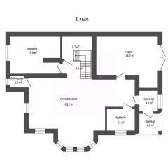 На территории находится основной дом с гаражом, а также уютная баня из осины и гостевой домик площадью 120 м² из бревна. Основной дом впечатляет своими размерами и продуманной планировкой. Он построен с использованием современных технологий: 1 этаж выполнен из керамзитобетонных блоков, а 2 этаж монолитный и отделан кирпичом, что обеспечивает отличную тепло- и звукоизоляцию. На первом этаже расположены: просторная кухня-столовая, огромный зал площадью 68,2 м², уютная спальня 20 м², санузел и прихожая. Второй этаж включает 5 комнат, три санузла, балкон и гардеробную, что обеспечивает максимальный комфорт для всех членов семьи. Отопление в доме газовое, водоснабжение из собственного колодца с насосом.
