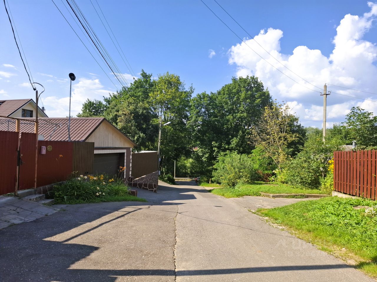 Участок огорожен по периметру забором, с внешней части установлены ворота и площадка для парковки. Форма участка позволяет построить на нем еще один дом или разбить огород/сад.