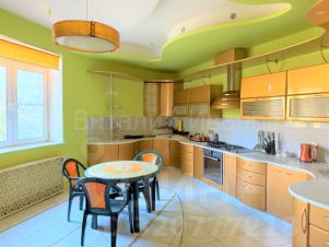 Отделка выполнена по индивидуальному дизайн проекту с применением только высококачественных дорогостоящих материалов, кухонная техника Bosch, мебель в гостиной Fendi.
