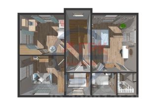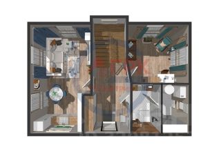 Чердачное перекрытие по деревянным балкам. Крыша стропильная система из деревянного бруса, обработанного антигорючим и противонасокомовым составом. Кровля мягкая бесшумная черепица. В стоимость входит водосточная система и внешняя отделка как на 3д рендере.