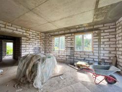 Материал строительства и кладка блоков видна невооруженным взглядом. Перекрытия бетонные плиты. Крыша утеплена. Теплый контур закрыт.