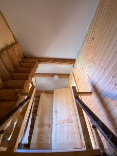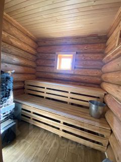 2-х этажная баня 56 кв. м. из бруса, на ленточном фундаменте с плитой. 1-й этаж: кухня-гостиная, с/у, душевая, парная. 2-й этаж : две спальни.
