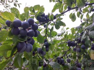 Плодовые деревья: яблони, вишня, малина, терновник.
