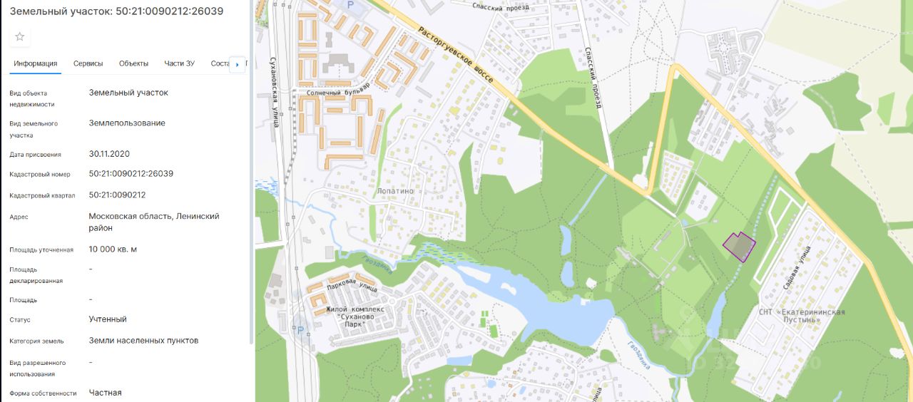 Локация: Ленинский район, рядом с усадьбой Суханово, граничит с СНТ Екатерининская пустынь.