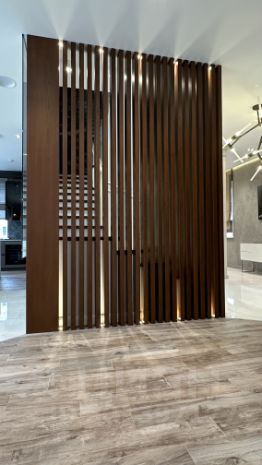 1-й этаж: кухня, гостиная с домашним кинотеатром, обеденная зона с барной стойкой, гостевая спальня, санузел, гардеробная.