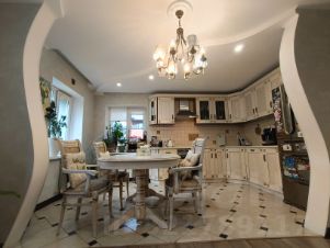 Общая площадь дома по документам 165,6 кв м (фактически больше). На первом этаже прихожая, коридор, санузел с ванной, каминная, спальня и кухня-гостиная. На втором этаже имеется общий санузел и 3 изолированные комнаты, в одной из которых есть просторный балкон. В доме также есть дополнительные тех помещения такие как, бойлерная, подвал, чердак.
