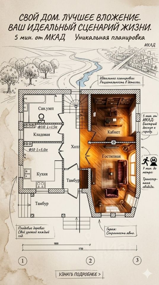 * Уникальность локации: Домов со статусом ИЖС и такой транспортной доступностью (МКАД + метро) — единицы.