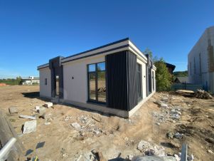 Современный авторский проект Sadigi Development Group, одноэтажный дом с панорамными окнами площадью 140 м², идеально сочетающий стиль и комфорт. Этот уютный и функциональный проект предлагает четыре просторные спальни, каждая из которых наполнена светом и воздухом благодаря большим окнам.
