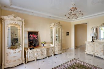- Двери массив с порталами, подоконники - гранит (на кухне), в комнатах - мрамор. Изящная бетонная лестница облицована мрамором