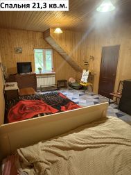 Продается дом 146,7 кв.м. на участке 9,3 сотки (20х44 метра) в СНТ "Солнышко" (Видное). Дом 2010 года постройки, кирпичный, двухэтажный. Строили сами. Фундамент свайный. Стены цельнодеревянные. Внутренняя отделка вагонка. На полу доска. Окна двойные стеклопакеты. Потолки 2,8 метра. Крыша металлочерепица со снегоудержателями. В доме два входа / выхода, есть возможность изолировать под две семьи, на два отдельных блокированных дома. На первом этаже: спальня 21,3 кв.м. (стол-книжка), комната 16,8 кв.м. (шкаф книжный, сервант, диван, стол), кухня 13,3 кв.м., (диван, кухонный гарнитур из 17 предметов, плита газовая, духовой шкаф, стол, шкаф-колонка, раковина, газовый котел), прихожая 12,3 кв.м. (шкаф-купе трехдверный с зеркалом, стол журнальный), терраса 9,4 кв.м. (спортивные турники, лестница на 2й этаж), ванная 2,7 кв.м. (ванная, раковина, зеркало, стиральная машинка), туалет 1,6 кв.м. (унитаз). На второй этаж деревянная, сосновая лестница. Вода центральная и канализация - платежи в СНТ. Электричество 15 кВт, прямой договор, счетчик двухфазный. Газовое отопление, газовый котел Baxi Luna-3 Comfort. На участке гараж шлакоблочный 26,2 кв.м. Участок сухой, ровный. Забор деревянный по лицевой стороне участка, по трем другим сторонам сетка Рабица. На участке две лавочки. Деревья груша, вишня, яблони, черешня. Кусты смородина, малина, ежевика, жимолость, барбарис. Дороги в СНТ чистят круглогодично. Вывоз мусора один раз в день. Дом расположен на тупиковой улице. Тихое место. В шаговой доступности магазины, пункты выдачи, кафе, автомастерские, баня, лыжная трасса, река Купелинка. От дома до автобусной остановки 400 метров, до ж/д станции Расторгуево 4,5 км, до МКАД 7,5 км. Один взрослый собственник. Оперативный показ. Специалист по недвижимости Светлана.