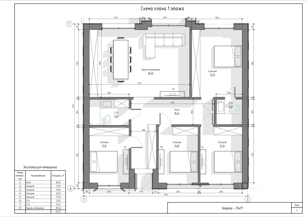 - 4 спальни
