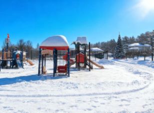 Спортивные объекты: футбольное поле, теннисные корты, волейбольная площадка, спортивные и детские игровые площадки во дворах.