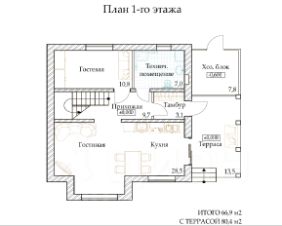 В доме есть: -кухня-столовая гостиная 30 кв.м.