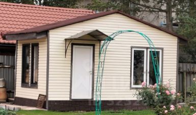 Летний деревянный домик, отделанный сайдингом, используется для садового инвентаря. Легко переделывается под любые задачи.