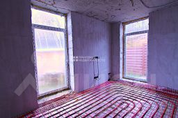 Дом построен из монолитного материала, перекрытия также монолитные. Отопление обеспечивается собственной котельной, водоснабжение — скважиной. На участке есть электричество, но благоустройство ещё не выполнено.