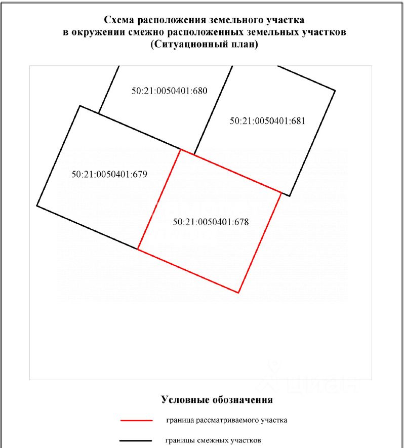 Кадастровые номера 50:21:0050401:678 и 50:21:0050401:679.