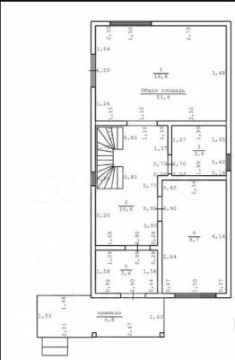 1 этаж: кухня 16.6 кв.м., комната 10 кв.м., санузел, прихожая, коридор.
